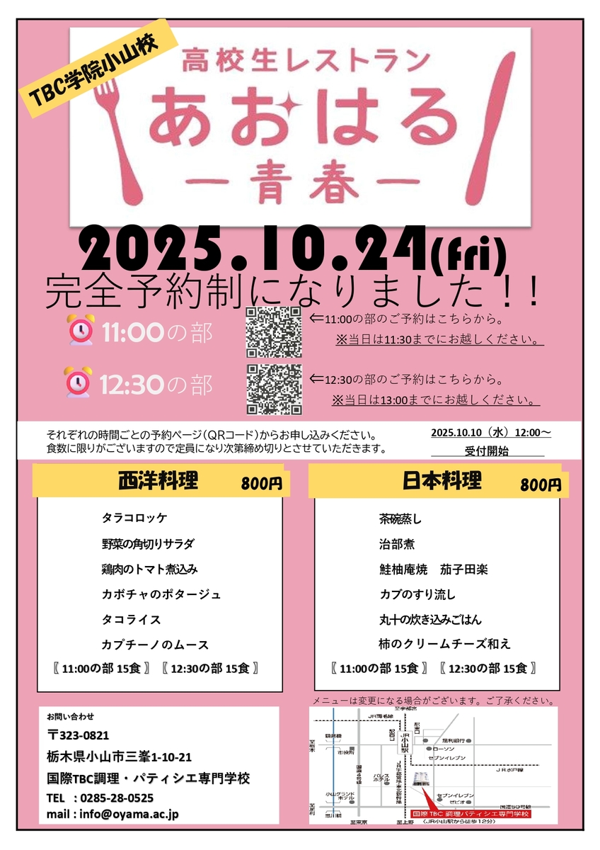 【高等課程】高校生レストラン「あおはる」10/24(金)OPEN!