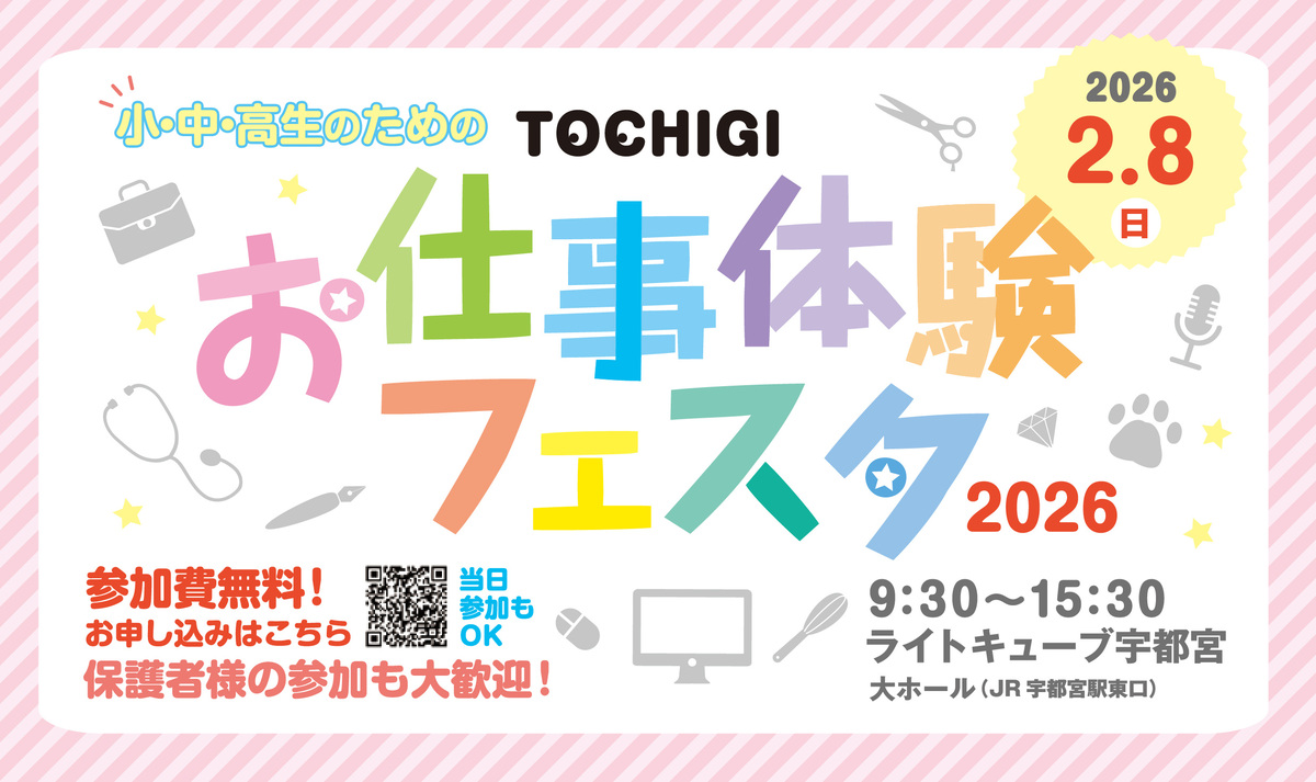 【とちぎお仕事体験フェスタ2026】TBC学院後援!2月8日(日)ライトキューブ宇都宮にて開催!