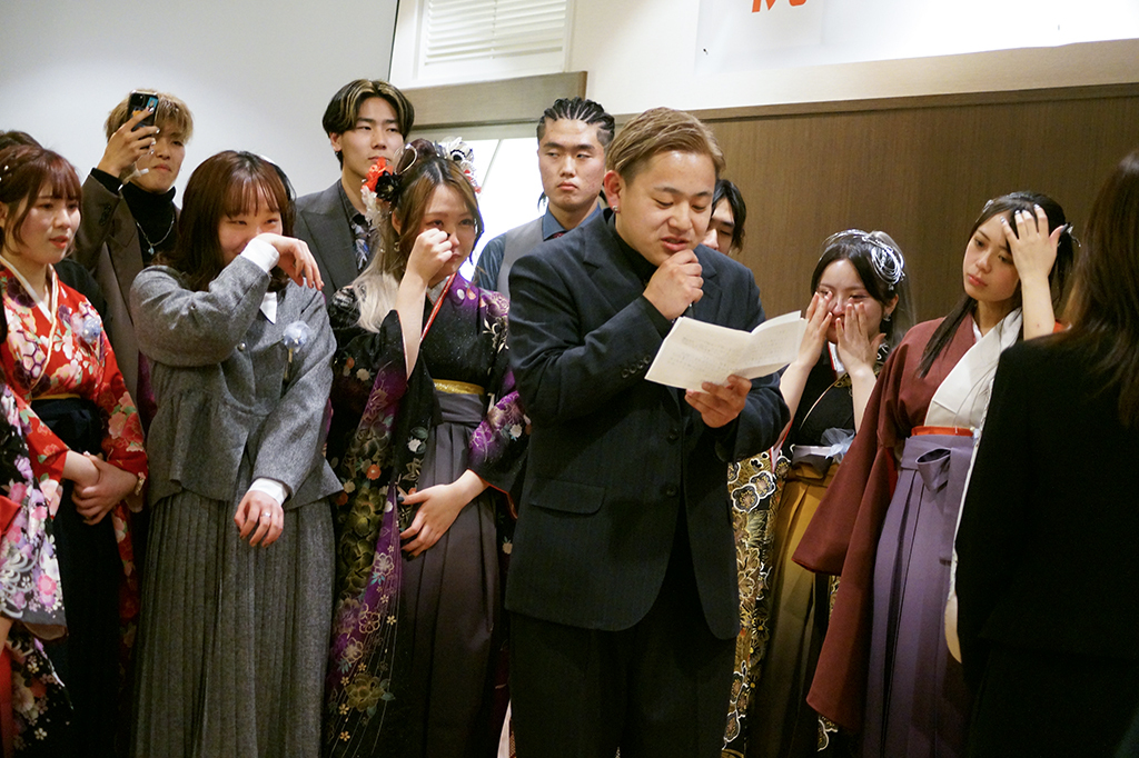 最後は仲間と、先生との別れに多くの学生たちが涙しました。
