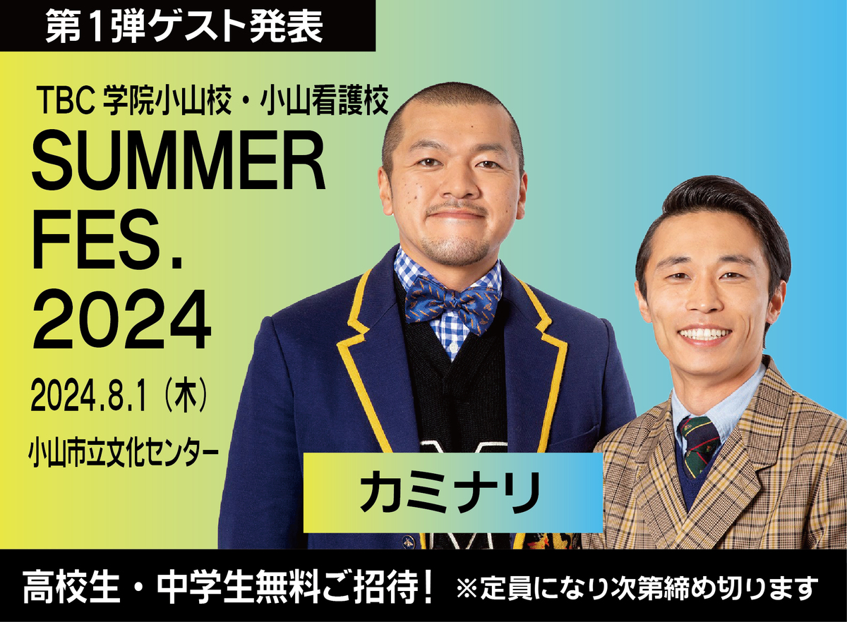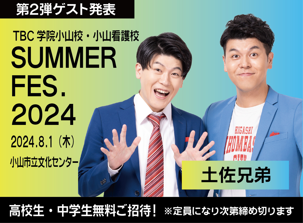 TBC学院小山校&小山看護校合同イベント「サマーフェスティバル2024」の第2弾ゲストを発表!