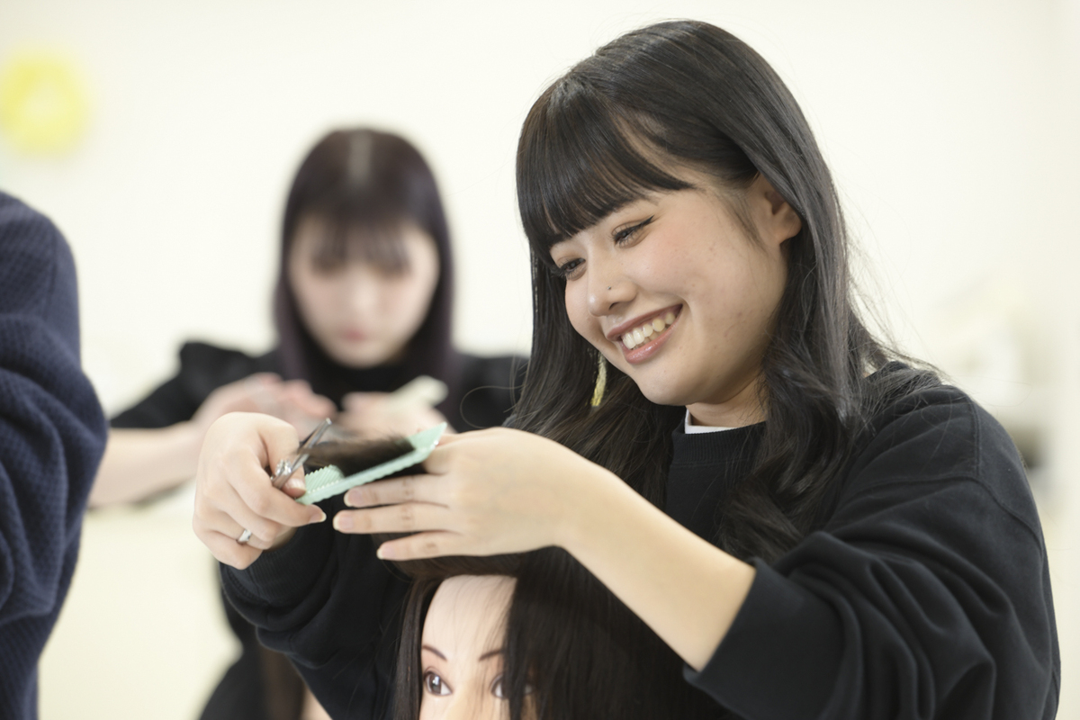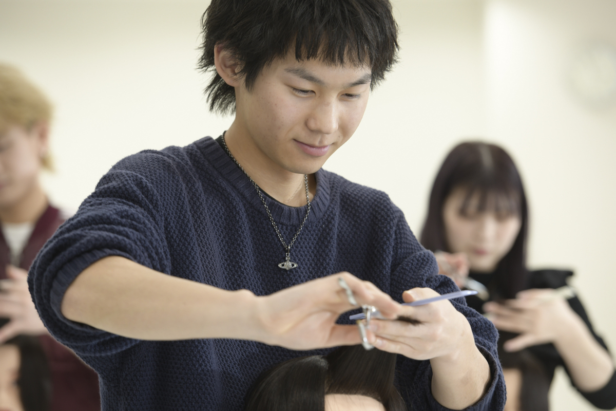 少人数制のクラスで、一人ひとりの習熟度に合わせた丁寧な指導を受けられるため、美容師の経験が全くない方でも安心して学ぶことができます。