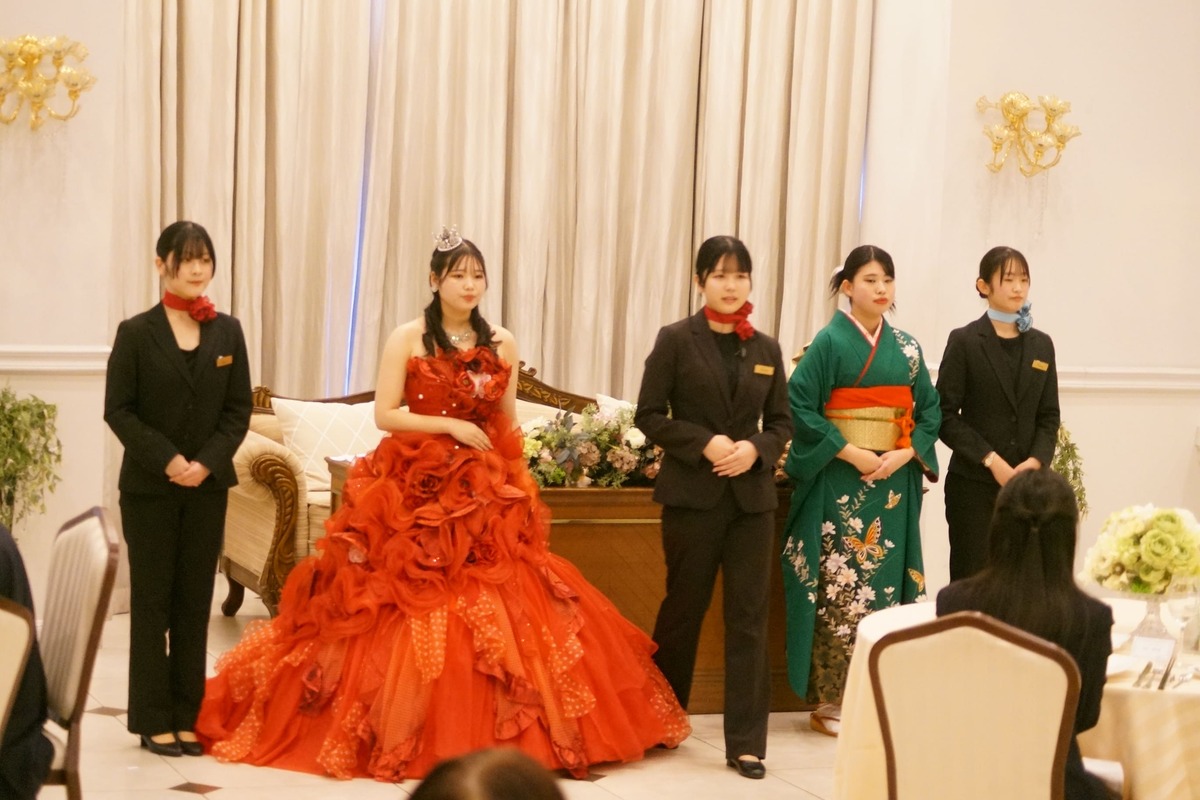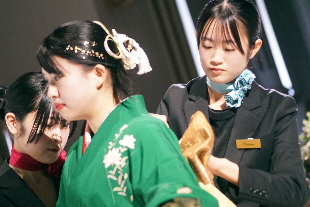 今回は、2年生が参加する最後の模擬挙式となり、メイク、ヘア、着付け、テーブルセッティング、サービス、アテンドなど2年間の集大成を披露することができました✨