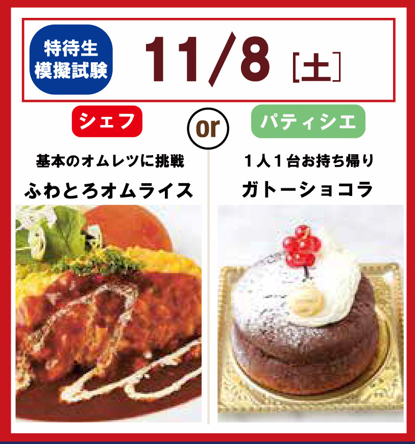 【体験学習】次回11月8日(土)開催!オムライスorガトーショコラ
