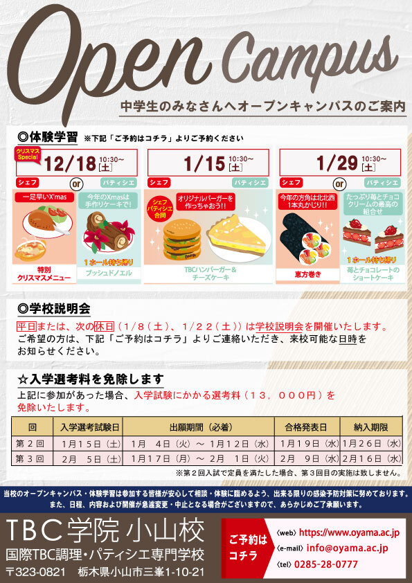 第2回以降の入試に向けてオープンキャンパス(体験学習)や平日学校説明会の予約を受け付け中です!