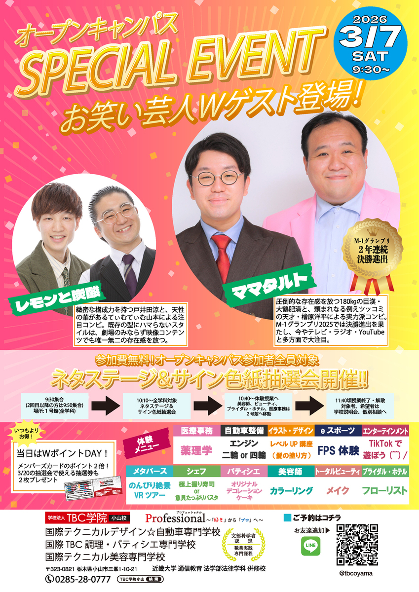 【オープンキャンパス】次回3月7日(土)開催!Wポイント&お笑いスペシャル!