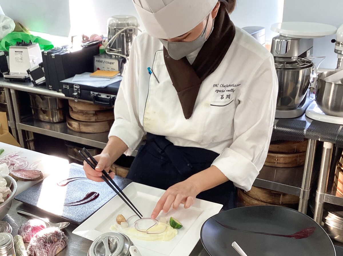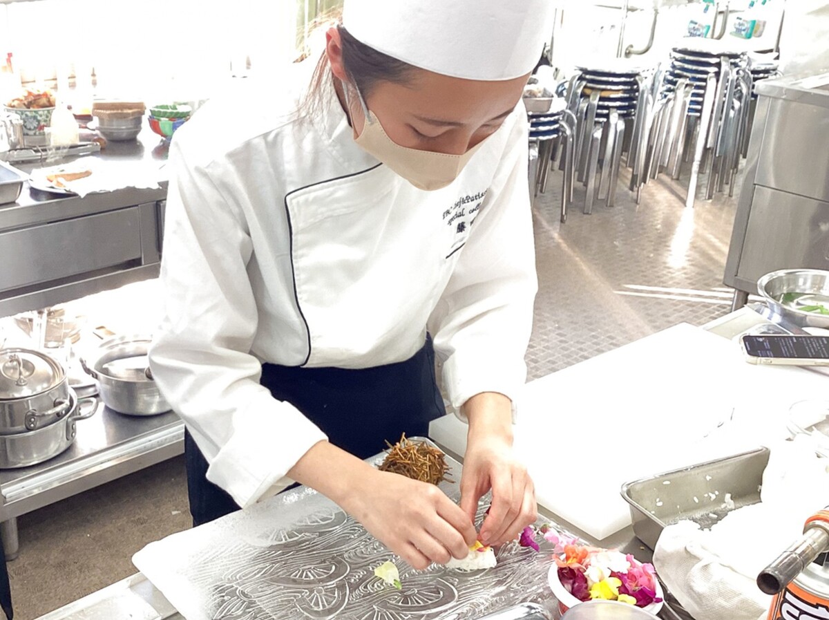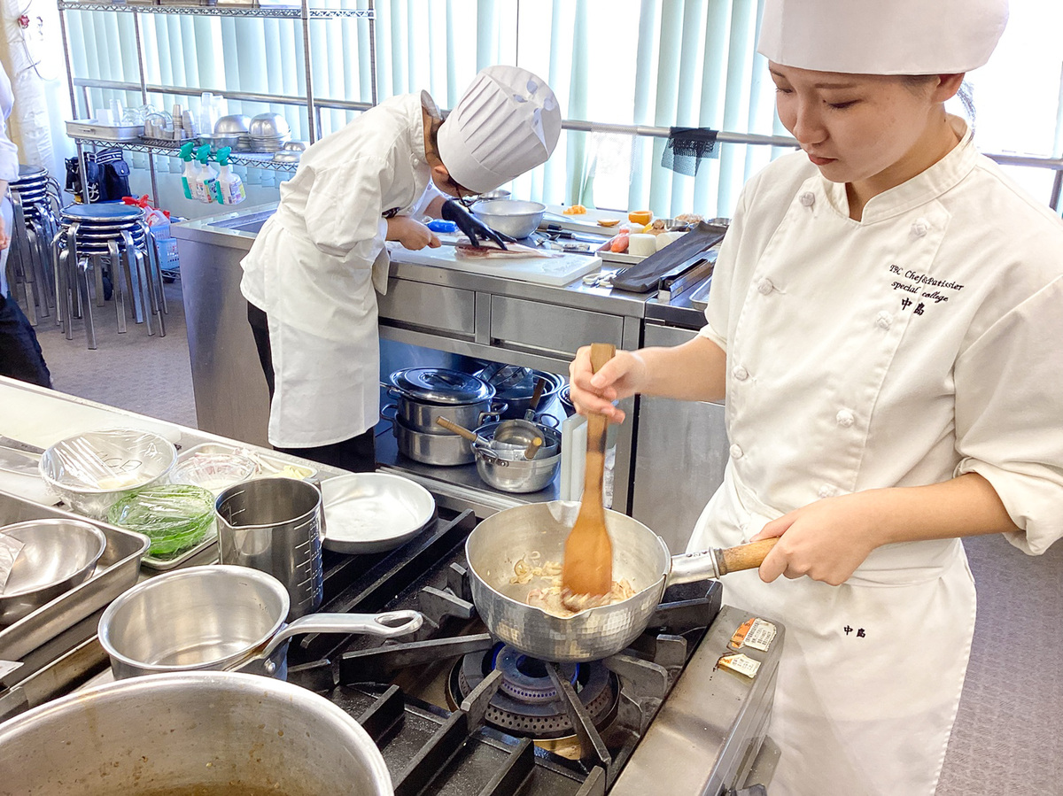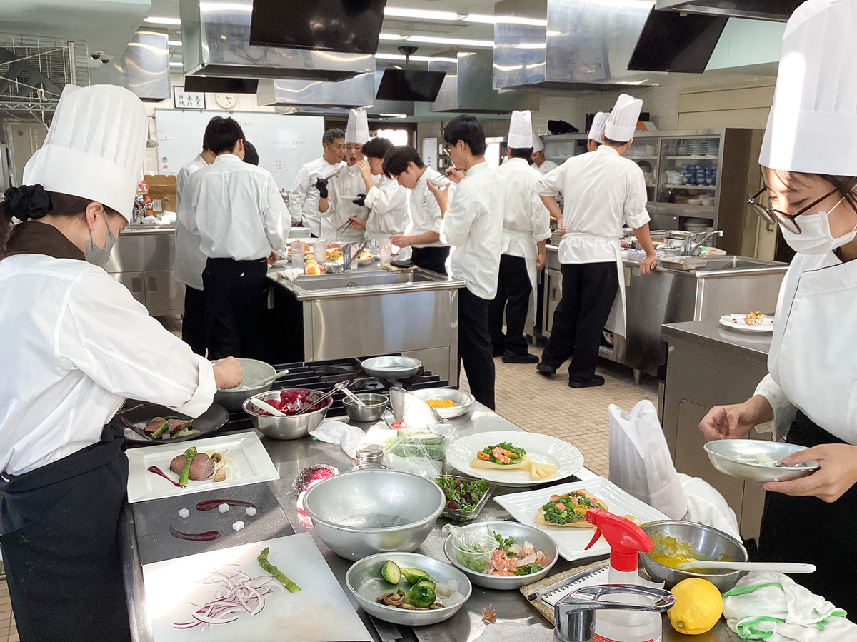 シェフ学科の学生たちは、美味祭で展示する作品制作中!