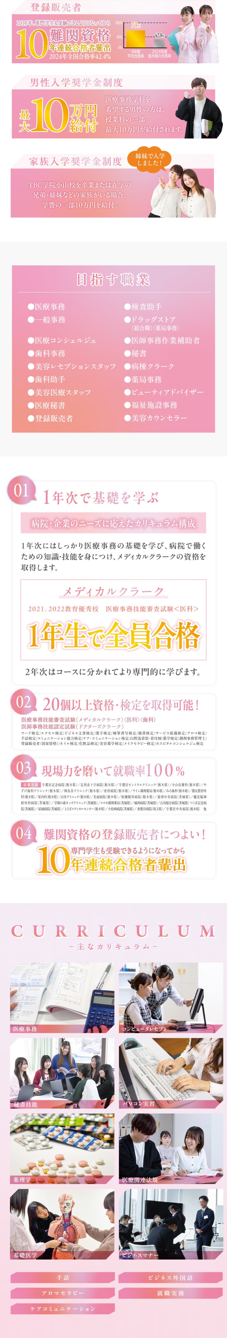 病院・医院・薬局への就職を目指し、メディカルクラーク(医療事務)を中心に学習。