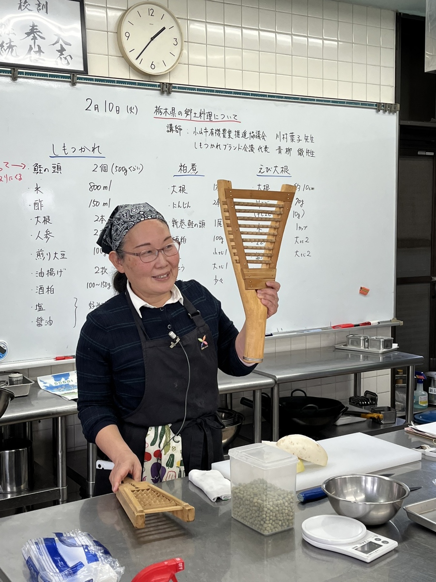 しもつかれ、柏煮、えび大根をはじめとする郷土料理を学びました。